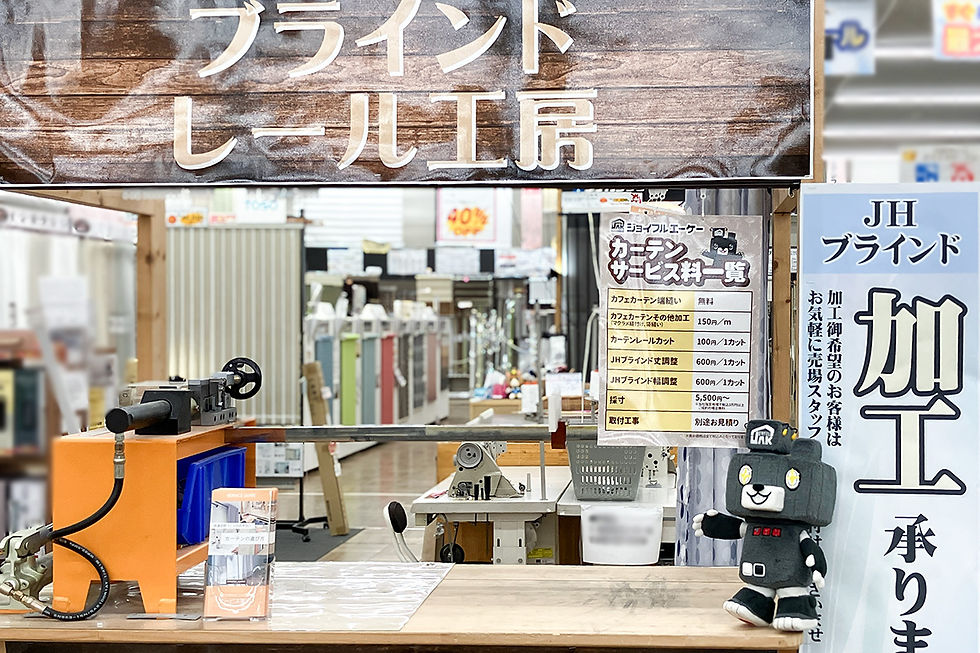 店内の工房では、購入したブラインドの幅・丈の調整や、カーテンレールのカットが可能 (有料)です。