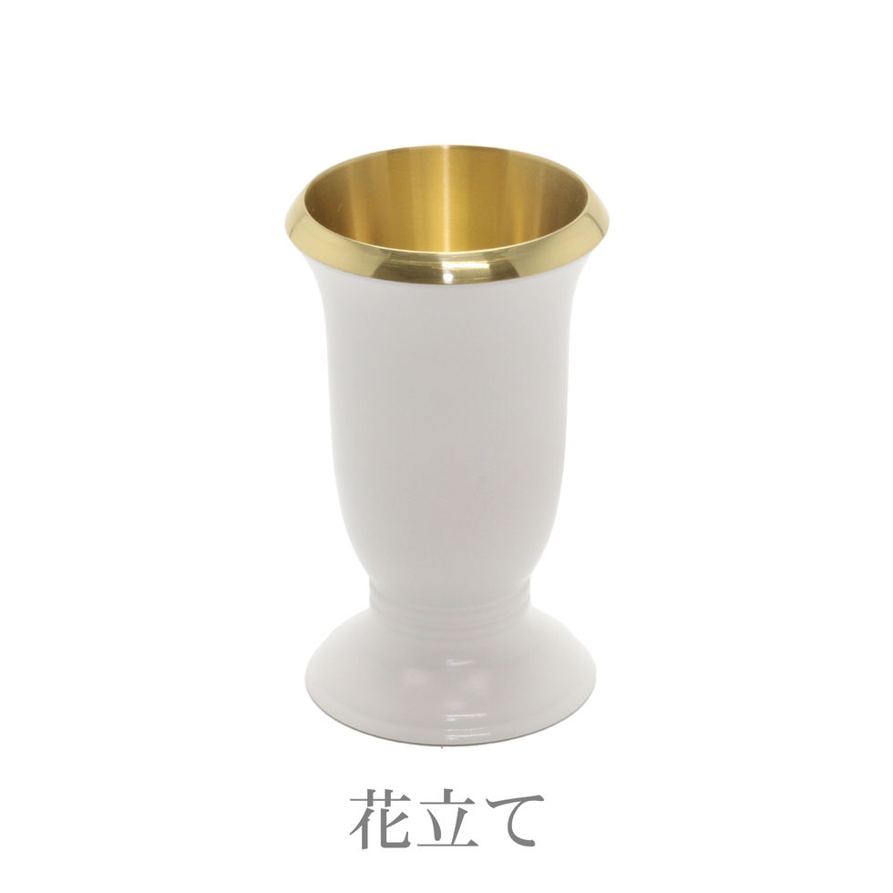 なめらかな曲線のフォルム、カラーバリエーションも多彩で、シックなデザインです。ふちの金色が高級感を高めます。花立て・香炉・火立て・茶湯器・仏飯器・線香差しの6点セットです。 表面材:真鍮 原産国:日本 サイズ(花立て):幅5.3×奥行5.3×高さ9.1cm サイズ(香炉):幅9.1×奥行9.1×高さ5.6cm サイズ(火立て):幅4.9×奥行4.9×高さ6.1cm サイズ(茶湯器):幅5.2×奥行5.2×高さ4.5cm サイズ(仏飯器):幅5.2×奥行5.2×高さ4.5cm サイズ(線香差し):幅2.7×奥行2.7×高さ7.2cm