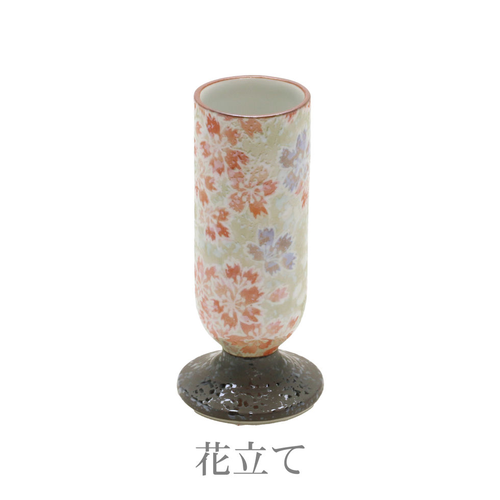 彩花という名の通り、彩鮮やかな有田焼です。淡い色彩の撫子がお仏壇に華やかさを加えます。花立て・香炉・火立て・茶湯器・仏飯器の5点セットです。 表面材:陶磁器 サイズ(花立て):幅4.7×奥行4.7×高さ10.2cm サイズ(香炉):幅9.0×奥行9.0×高さ5.8cm サイズ(火立て):幅5.6×奥行5.6×高さ5.0cm サイズ(茶湯器):幅5.0×奥行5.0×高さ5.0cm サイズ(仏飯器):幅5.3×奥行5.3×高さ5.0cm