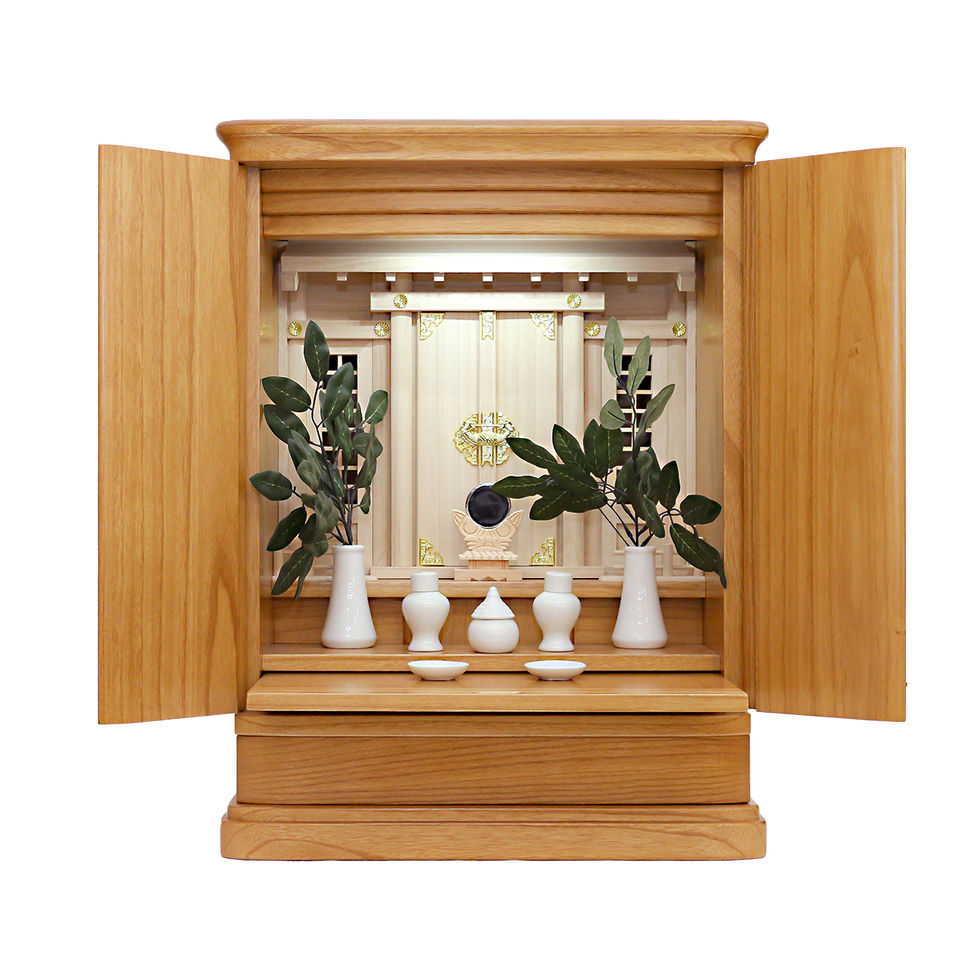 神道の方が、ご先祖様や故人をお祀りする祭壇です。 桐無垢の木目が美しい祭壇で、引き出しが付いている為、仏具等の収納にも便利です。